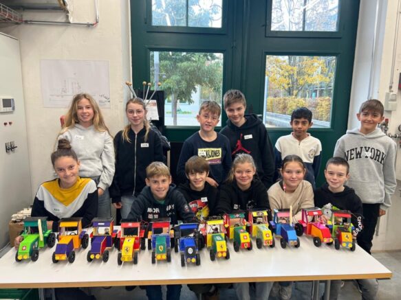 Energie in Münchenstein. Am Morgen starteten wir mit einem spannenden Solarworkshop, in dem wir viel Neues über Photovoltaik und Solarzellen lernten. Dabei hatten wir die Möglichkeit, unseren eigenen kleinen Traktor zu bauen, der mit Sonnenlicht betrieben wird.