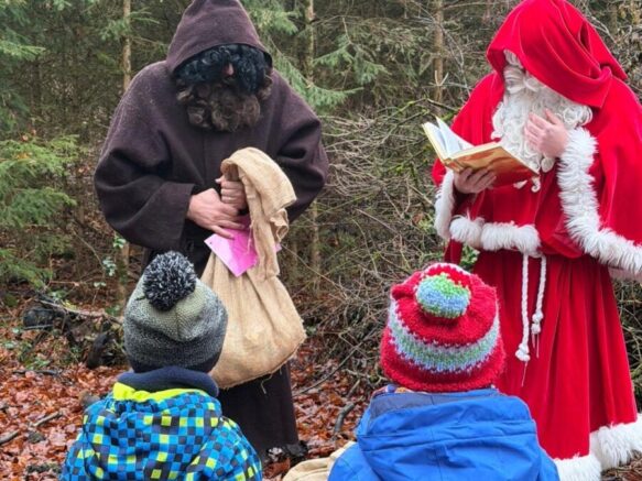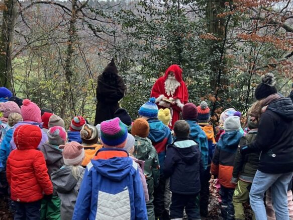 „Am Morge früeh im Winterwald, der Santichlaus het no chli chalt,…“ Mit diesem Lied begrüssten wir den Santichlaus und Schmutzli im Wald in Maisprach. Der Santichlaus las in seinem dicken Buch nach, was die Kinder verbessern können und was sie schon ganz gut machten und der Schmutzli überreichte anschliessend jedem Kind ein Säckchen. Die Kinder trugen als Dank dem Santichlaus und Schmutzli zum Abschluss noch ihre gelernten Verse vor und so machten sich die beiden wieder auf den Weg zurück in den Schwarzwald.